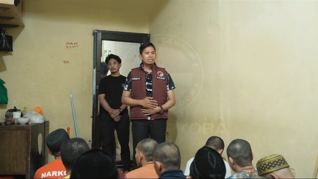 Kegiatan tersebut dipimpin langsung oleh Firman, Kasat Narkoba Polres Gowa, yang hadir bersama para tahanan titipan dalam suasana sederhana namun penuh makna.