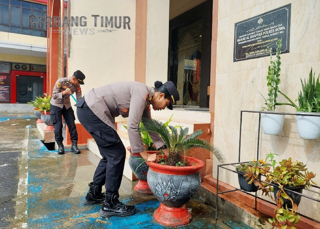 Kapolres Gowa melalui Kabag SDM, AKP Ida Ayu Made Ari, S.H, M.M menyampaikan bahwa kebersihan lingkungan kantor merupakan tanggung jawab bersama.